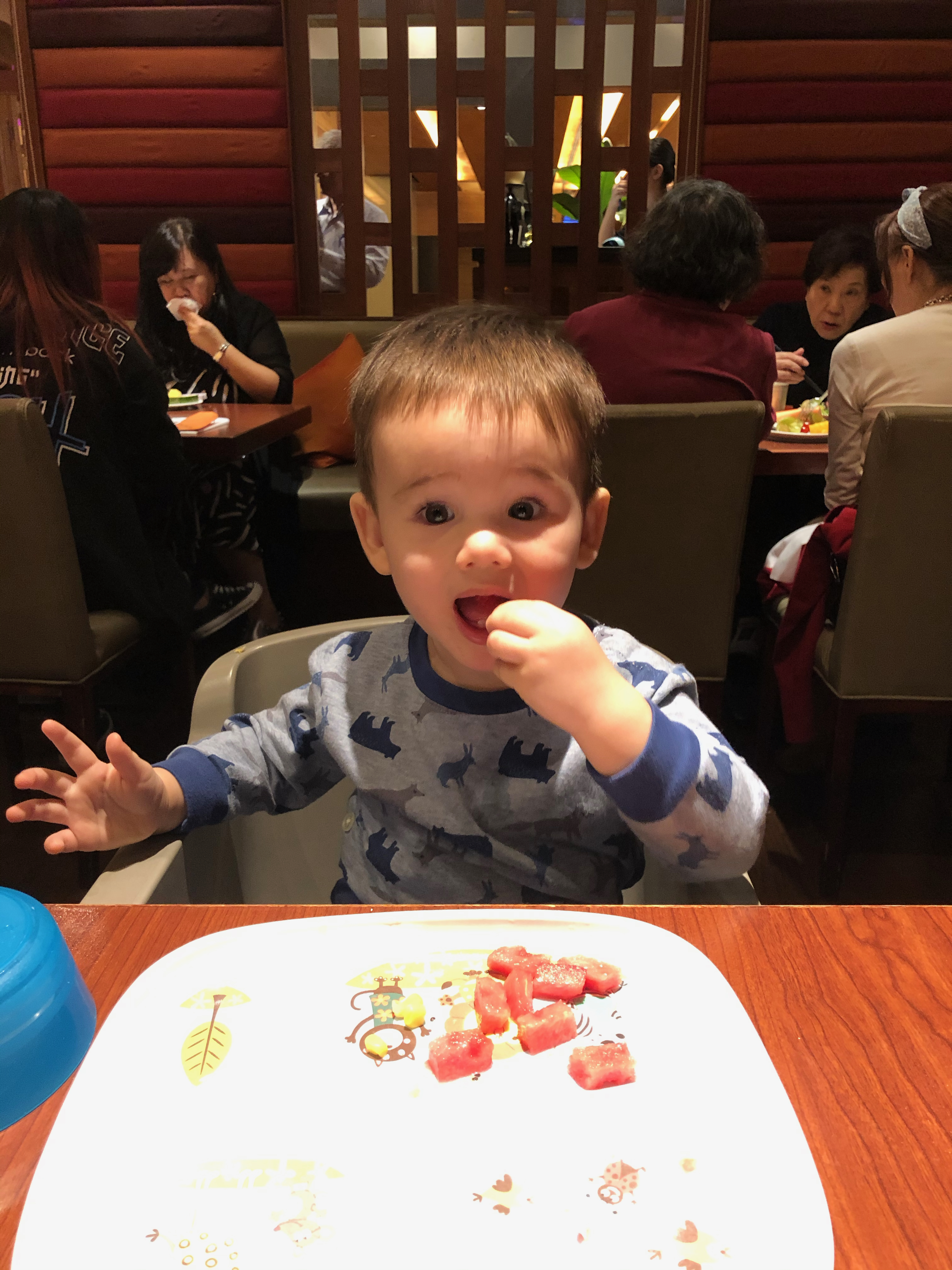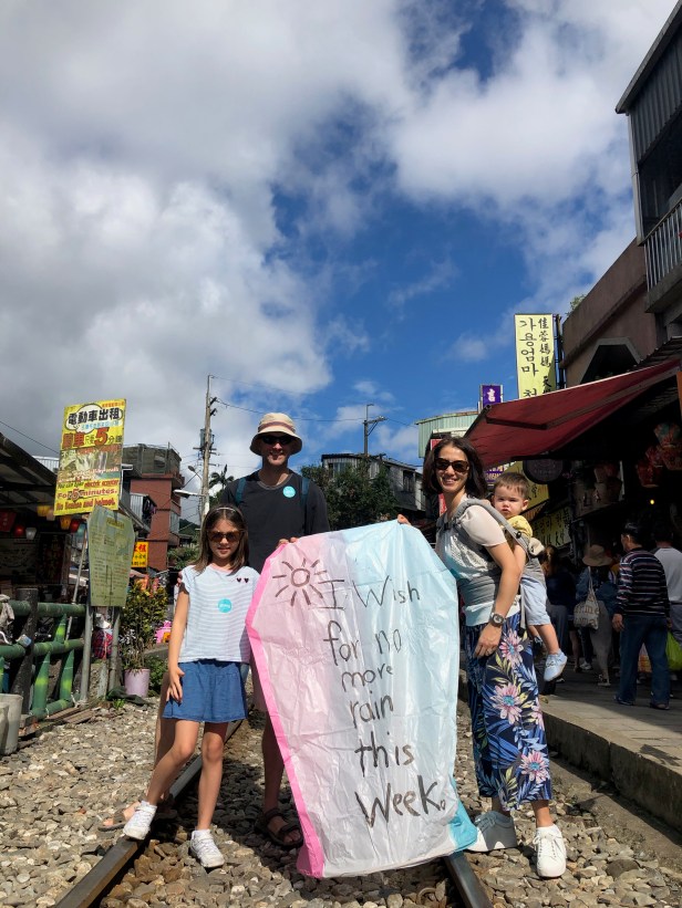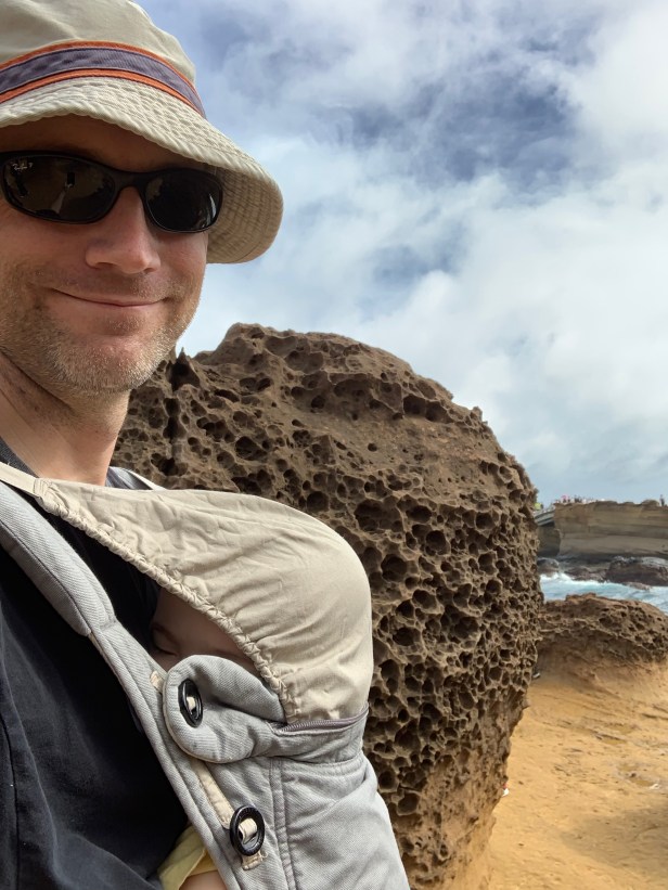 The day after we arrived in Taipei, we joined a bus tour to a few sights in the area surrounding Taipei. Timothy did great except for the 1.5 hours we were stuck in traffic coming home. We saw Yehliu Geopark (interesting rock formations), Shifen (wishing lantern), and Jiufen (town said to have inspired Miyazaki’s ‘Spirited Away’). Kyle took Timothy on a hike up to the clouds (literally, the view at the top was clouds).