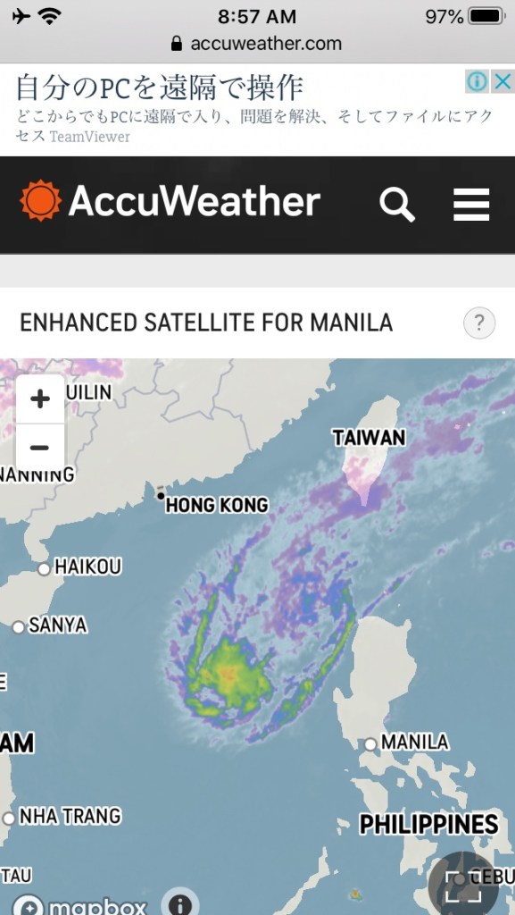 We went on a cruise that was very near Typhoon Phanfone, which hit the Philippines. We also rode lifeboats in the Philippines. However, these two events did not occur at the same time and were two days apart, so we were safe.